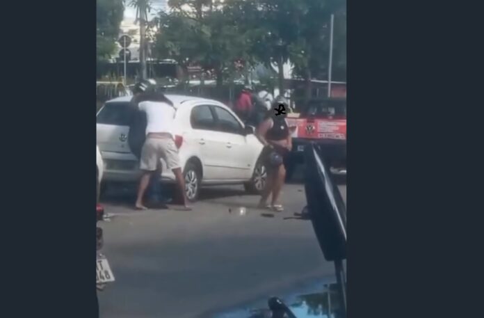 Vídeos que circulam nas redes sociais mostram os dois homens trocando socos e pontapés no meio do estacionamento. Uma mulher, possivelmente companheira de um dos envolvidos — identificado por estar de camisa branca — tenta intervir e conter os agressores, mas sem sucesso.