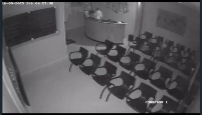 Imagens do circuito de segurança do estabelecimento registraram o momento em que um homem invade o local e circula pelo interior do prédio. Até o momento, não há informações confirmadas sobre os objetos ou valores que possam ter sido subtraídos.
