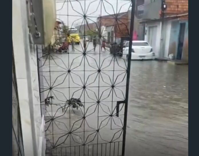 A chuva registrada neste domingo (15) voltou a causar transtornos para moradores da Rua São Francisco, localizada no bairro Itambé II, em Caucaia. Sempre que chove com mais intensidade, a via acaba ficando completamente tomada pela água, dificultando a circulação de moradores e motoristas.
