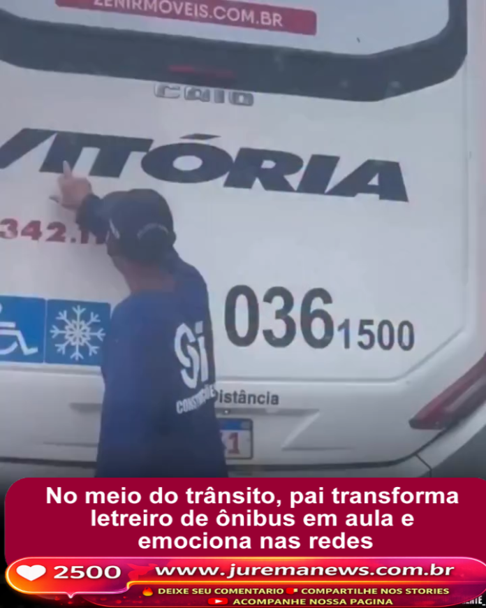 Uma cena simples, mas carregada de significado, ganhou destaque nas redes sociais nos últimos dias. Em meio ao trânsito, um pai foi flagrado usando o letreiro de um ônibus para ensinar o filho a ler, transformando um momento comum em uma verdadeira aula improvisada.