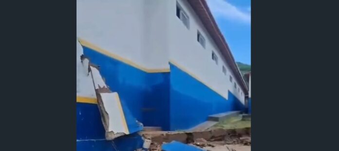 Parte do muro da Escola de Educação Básica Domingos Gonçalves Muniz desabou na manhã desta segunda-feira (16) após as fortes chuvas registradas na cidade de Itapipoca. A unidade de ensino fica localizada na Rua Sebastião Matias, no bairro Picos.